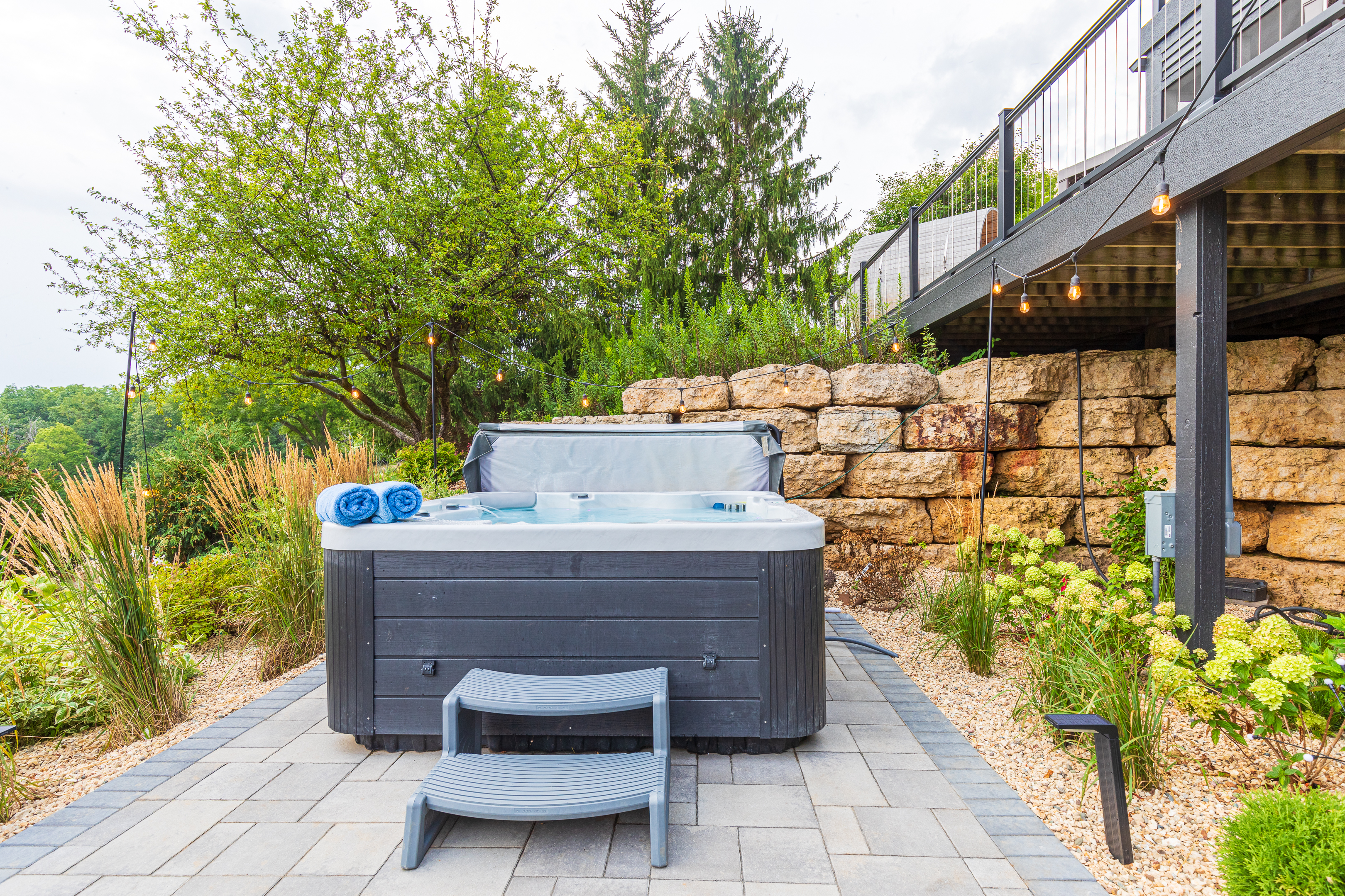 Wake up to peaceful hilltop views, spend your afternoons floating in the heated saltwater pool, and wind down with sunset dinners by the fire pit. The hot tub and cedar sauna offer the perfect reset after a day on the lake, hiking nearby trails, or exploring downtown Galena.